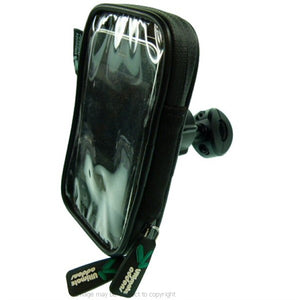 Attaches to the mirror stem giving a secure base to view your smartphone.