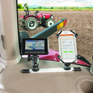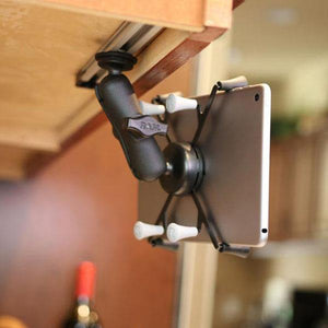 The mount can be used with fleet vehicles, like lorries and vans and trucks, needing to avoid obscuring views to wing mirrors and windows. Also for things like forklifts, tractors or retail vehicles, mounting to an upright bar in the operator cab. This will work with water vessels like kayaks and boats for mounting fishing rods and also action cameras. This means the rider is able to position the accessories without them getting in the way. The rails can be used at home as well. Attach the rail to the underside of kitchen cabinets for example. This allows for flexible viewing of recipes on your tablet while maintaining a clear workspace on your countertops.