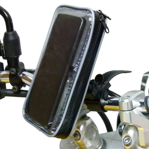 A slim light-weight mounting solution which holds your smartphone and offers protection from dust, dirt and water splashes from light rain showers.