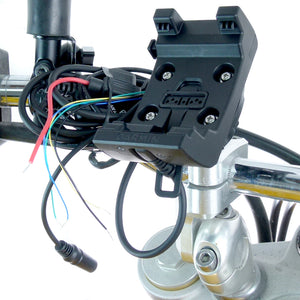 This mounting system replaces one of the M8 bolts on your handlebar top clamp bracket to give you a 1" ball fixture to which the holder attaches.