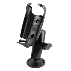 The RAM-B-138-GA41U consists of a 2.5" diameter round base with the universal AMPS hole pattern, double socket arm, diamond adapter base and high strength composite cradle. The mount is designed with a RAM 1" diameter patented rubber ball and socket system that has adjustment points at both ends of the double socket arm; this allowing for almost infinite adjustment and perfect viewing angles.