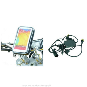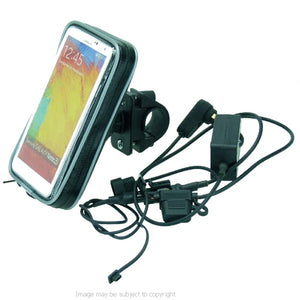 Hella / DIN powered waterproof handlebar mount for the Samsung Galaxy Note 3 smartphone. Includes the BMW style socket motorcycle charger cable.
