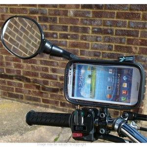 Attaches to the mirror stem giving a secure base to view your smartphone.