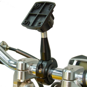 Stylish metal handlebar mount, machined in aluminium with a smooth, quality matt black finish with 4 hole AMPS adapter for TomTom Rider docks.