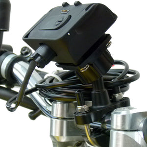 BuyBits exclusive powered dock holder and metal u-bolt motorcycle handlebar mount.