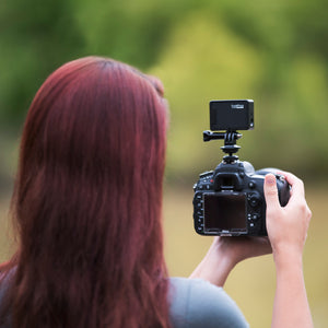 GPHOTSHOE allows you to use your GoPro HERO side-by-side with your DSLR camera for recording or live streaming photo shoots. The GoPro mount slides onto your DSLR camera's hot shoe and features the GoPro lateral screw mount pattern. The camera hot shoe mount's locking ring assures a tight connection for added security.