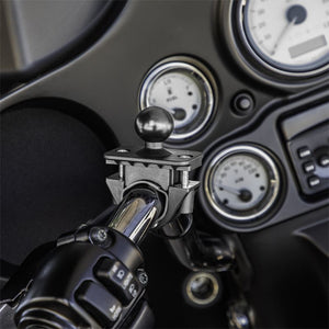 The motorcycle handlebar mounting pedestal is made of composite and features a minimal but solid design. If you are looking to custom build a motorcycle mount, this component is highly recommended. All you need to include is a phone holder, adapter, and shaft. The 25mm (1 inch) ball is compatible with the Robust Series Shafts and RAM® Mounts Size B.
