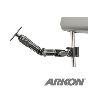 Arm; Arkon's durable car headrest mount is ideal for mounting device in the center of the back seat. Use in taxis and other passenger vehicles. The 8" (20cm) multi-angle aluminum mount measures 9 inches end-to-end and attaches to straight bar headrest posts on either the front or back seats. Three adjustment knobs at 2.5 inch (6.35cm) intervals on the mount arm and two additional 180° adjustment points at the top and bottom of the mount help position the device for perfect viewing.