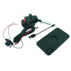 17.5mm - 20.5mm / 0.68 - 0.81 inch Central Fork Stem Mount Base with TiGRA MountCase for iPhone 12 Mini & Hardwire / Direct to battery phone charger. Charging access through adapter.