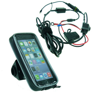 This mount will hold and charge your phone while protecting it from water splashes / light rain showers and damp weather.