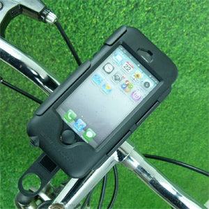 Locking strap handlebar mount with a dedicated waterproof tough case for the iPhone 5 / 5S smartphone. (Not suitable for the iPhone 5C)