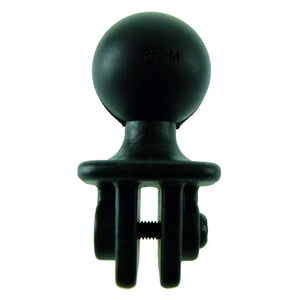 The camera adapter consists of a 1 inch diameter rubber ball connected to a custom screw fixing which attaches directly to the Garmin VIRB.