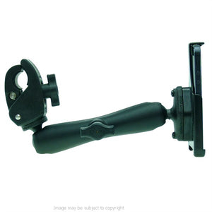 The Mount consists of a high strength Model Specific iPhone 5 Cradle with 1" rubber ball diamond plate together with a long double socket arm and a 1" rubber ball Small Tough-Claw.