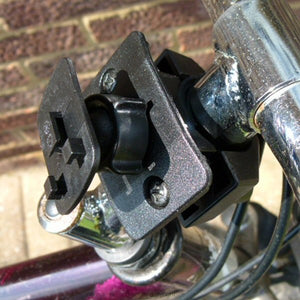 Twin anodized screws fix the mount to your handlebars, providing a stable base for the case.