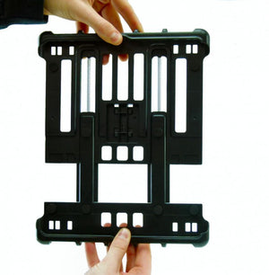 This Mount features a RAM tool-less Small Tough-Claw base with 1" rubber ball, a RAM Double Socket Swivel Arm with central hinge together, an Arkon 4-Prong to 1 inch ball and a BuyBits adjustable tablet cradle.