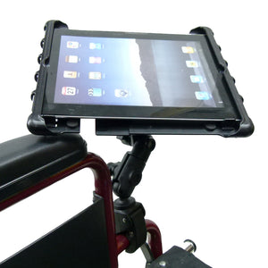 Wheelchair Rail and Tube Tablet Mount with Double Socket Swivel Arm for iPad.